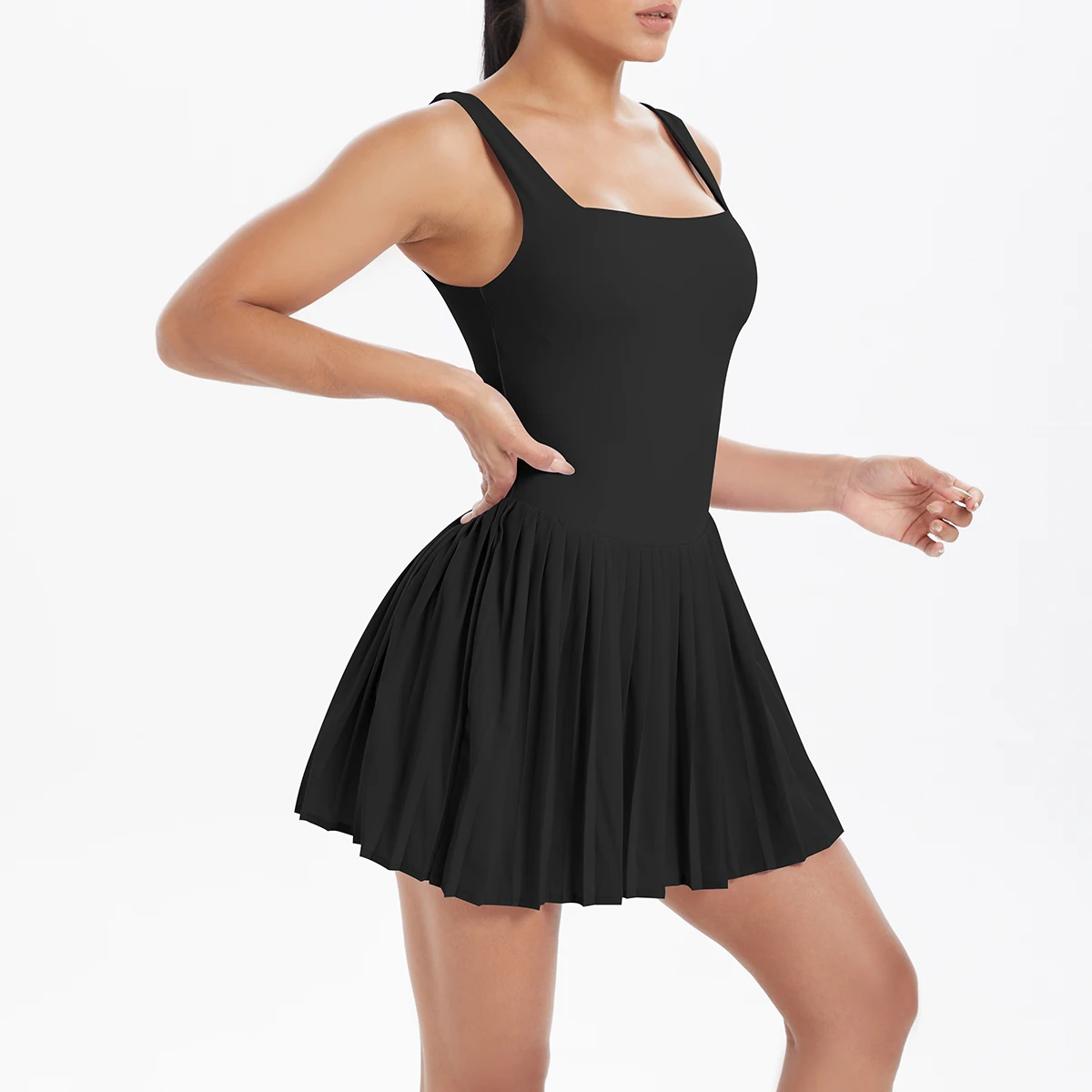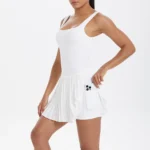 Women’s Yoga & Gym Jumpsuit Fitness Outfit – Tennis Skirt Sportswear with Built-In Shorts